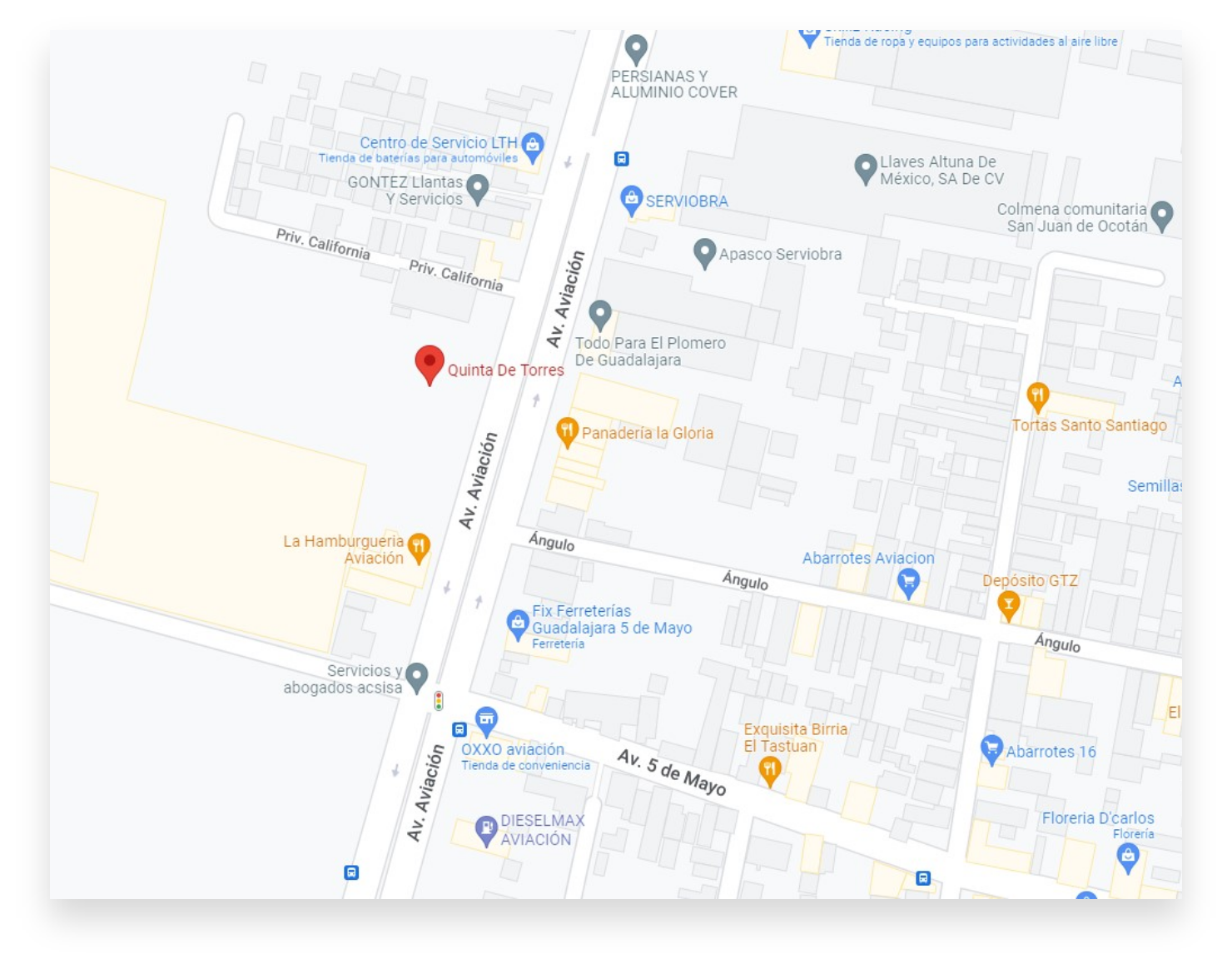 Ubicación: Av. Aviación 270, 45019 (Zona Real) Zapopan, Jal.